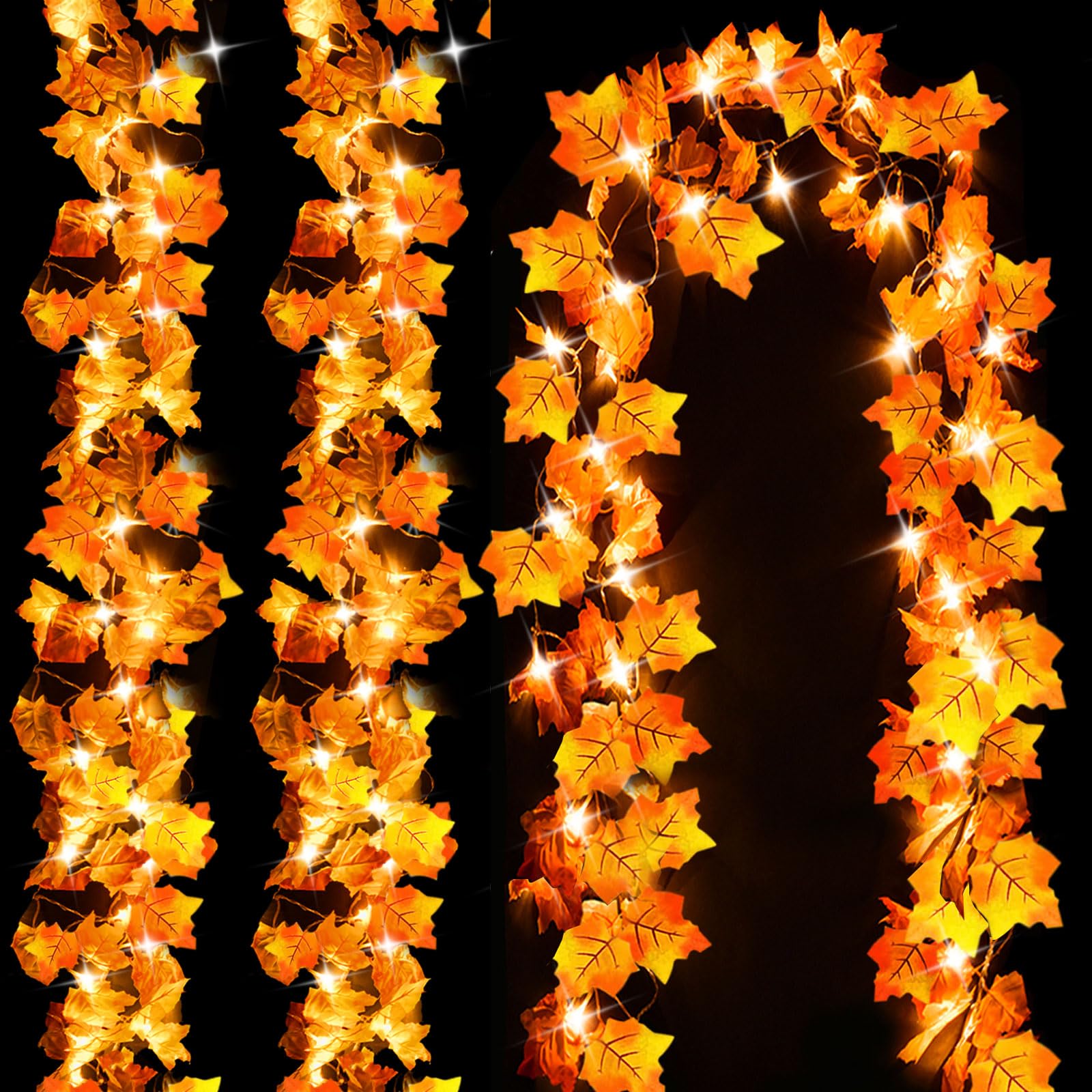 The lights are made to handle some weather, so you could use them outside without a problem. Their size makes them easy to combine with other decorations for a fuller look. Overall, these garlands bring a nice touch of autumn to any room.