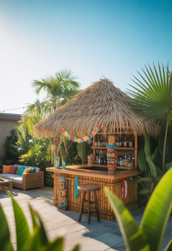 Add colorful lanterns or tiki masks to give it personality. Your friends will love gathering around for drinks and good times in your tropical setup.