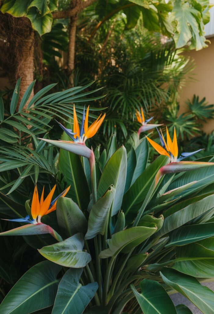 You can add a bold touch to your backyard with bird of paradise flowers. Their bright orange and blue petals look like a bird in flight, giving your garden a unique feel.