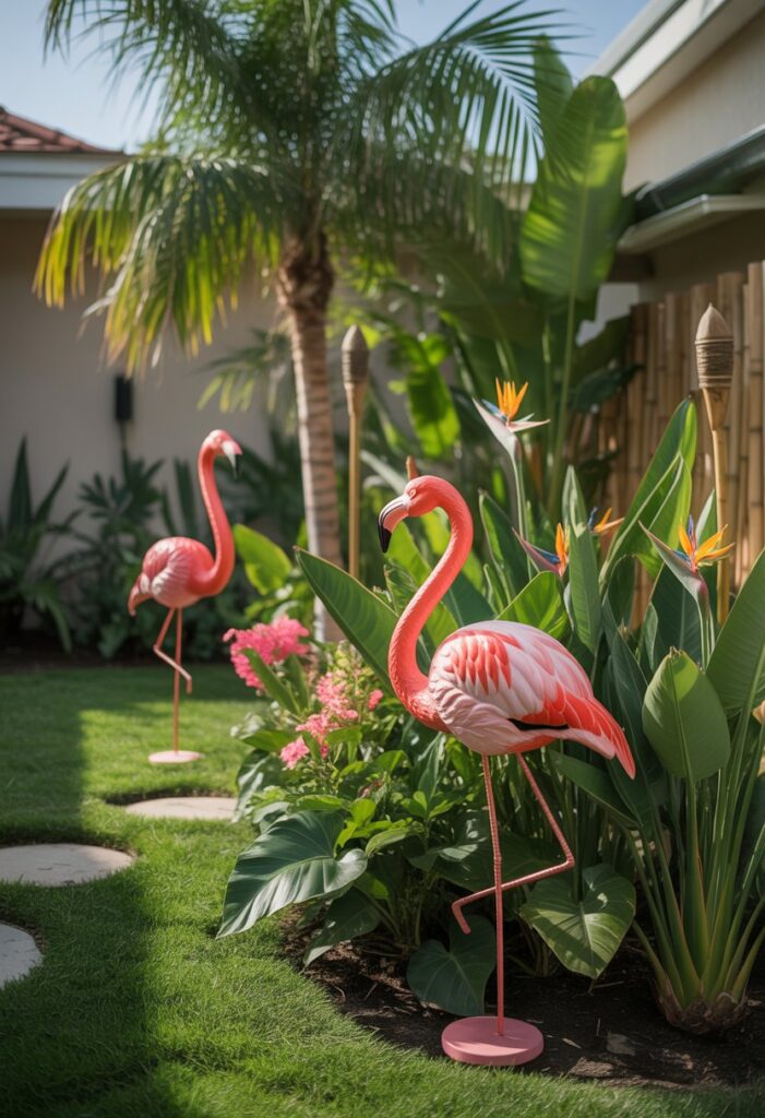 - 8. Use flamingo lawn ornaments for playful tropical touches