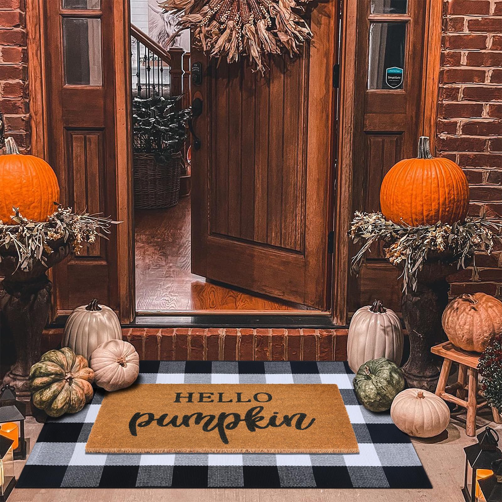 One thing to keep in mind is the plaid rug needs some care. It picks up muddy footprints easier when outside, so you might want to bring it inside during bad weather. Overall, this set holds up nicely and gives your fall entrance a fresh, cozy vibe.
