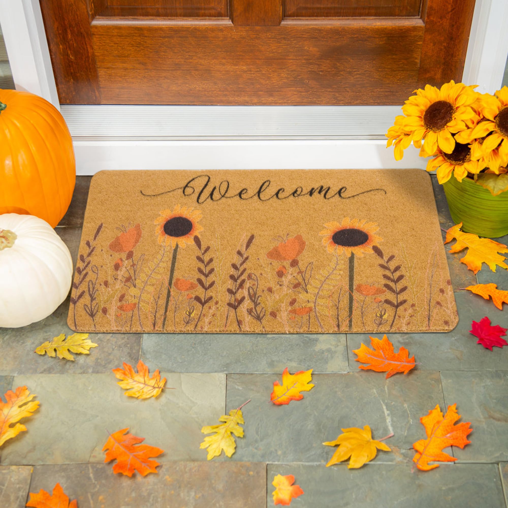 The sunflower pattern makes a nice fall statement without being too flashy. It feels good underfoot and wasn’t hard to keep clean after a few muddy days.