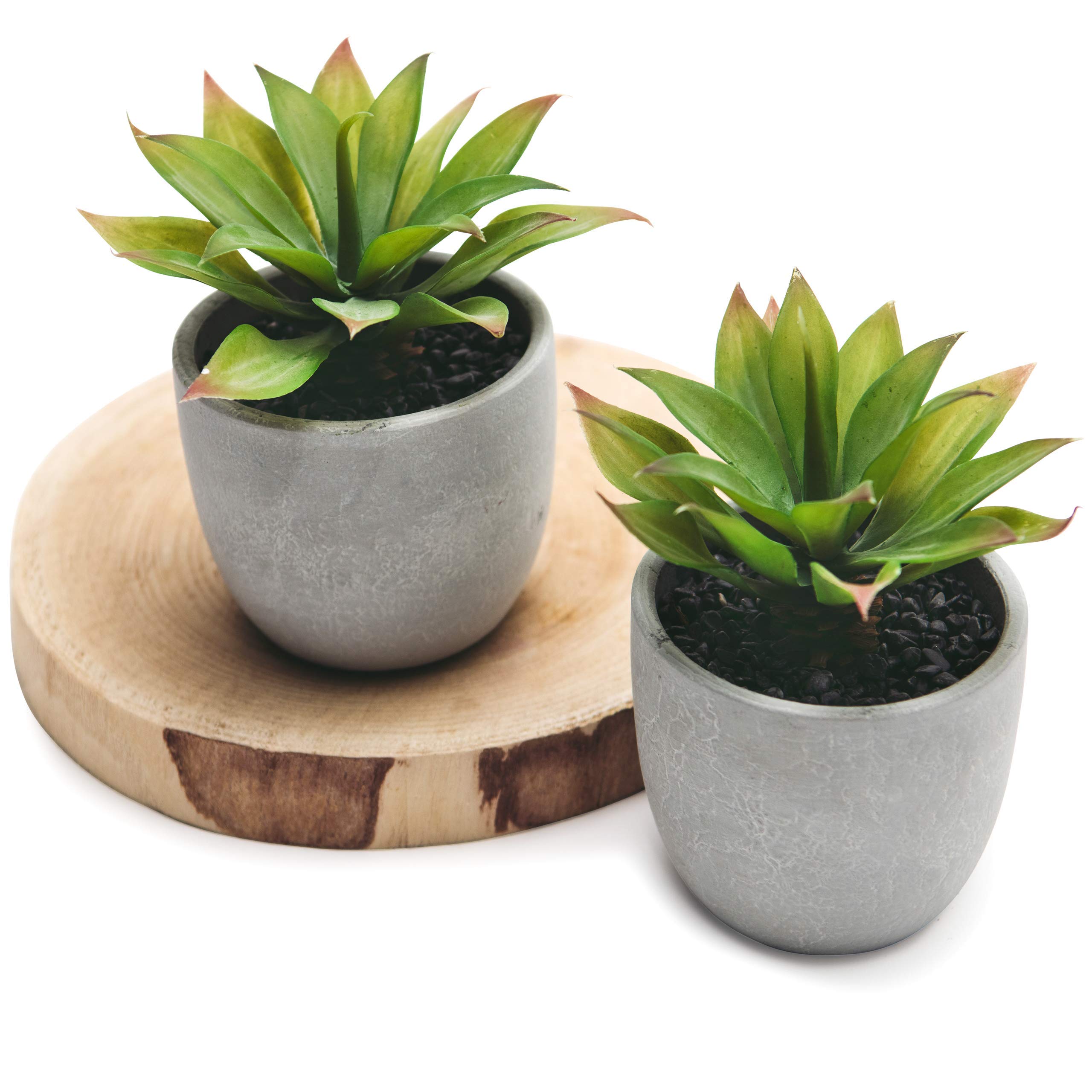 You’ll find these faux succulents fit perfectly on shelves, desks, or bathroom counters. Their size is just right to brighten up small corners without taking up too much space. The cement-style pots add a rustic feel that works well with farmhouse decor.