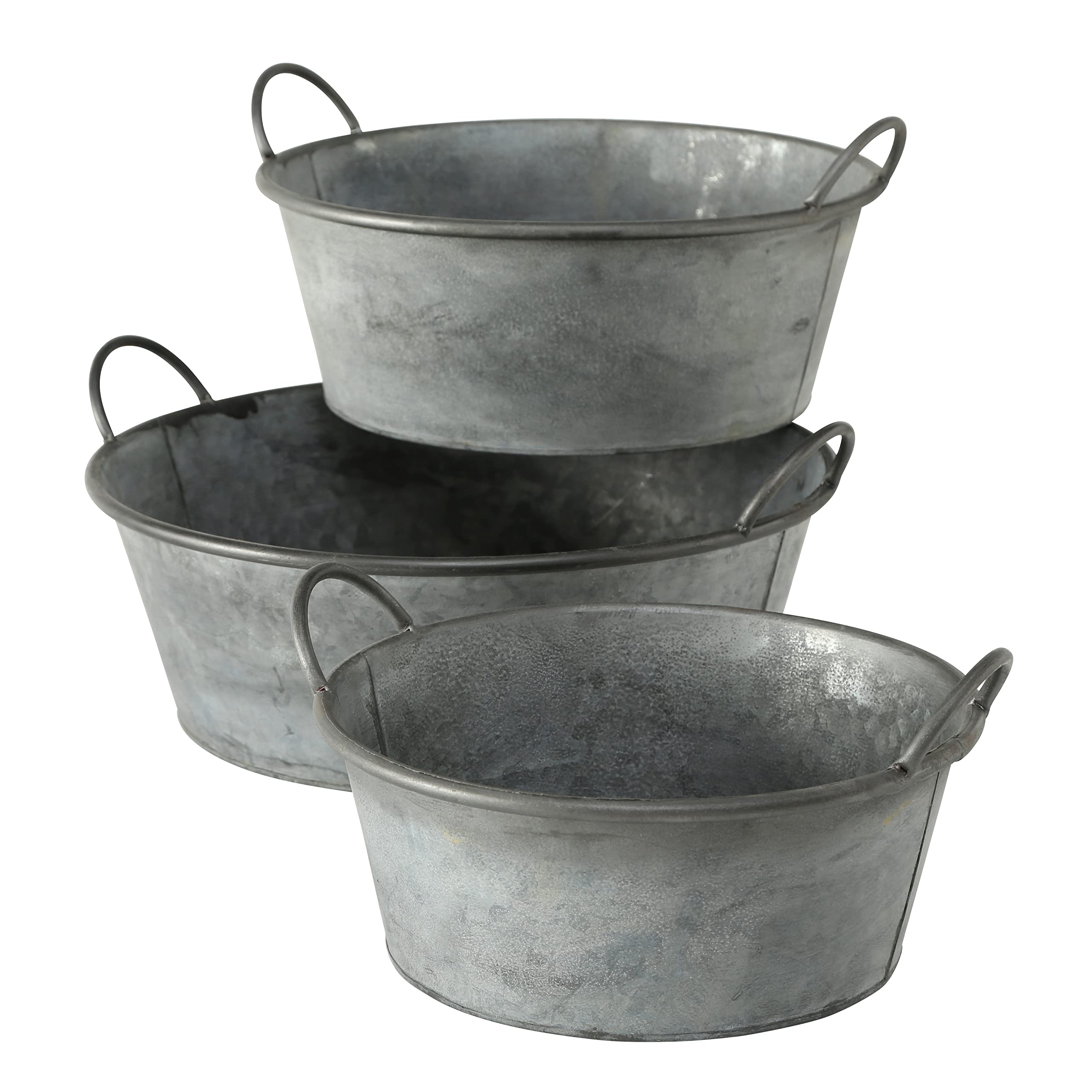 These oval tubs have a rustic farmhouse look that fits well in many settings. Their small size is ideal if you need containers on window sills or narrow spaces. The handles help you move them around or hang them up if needed.