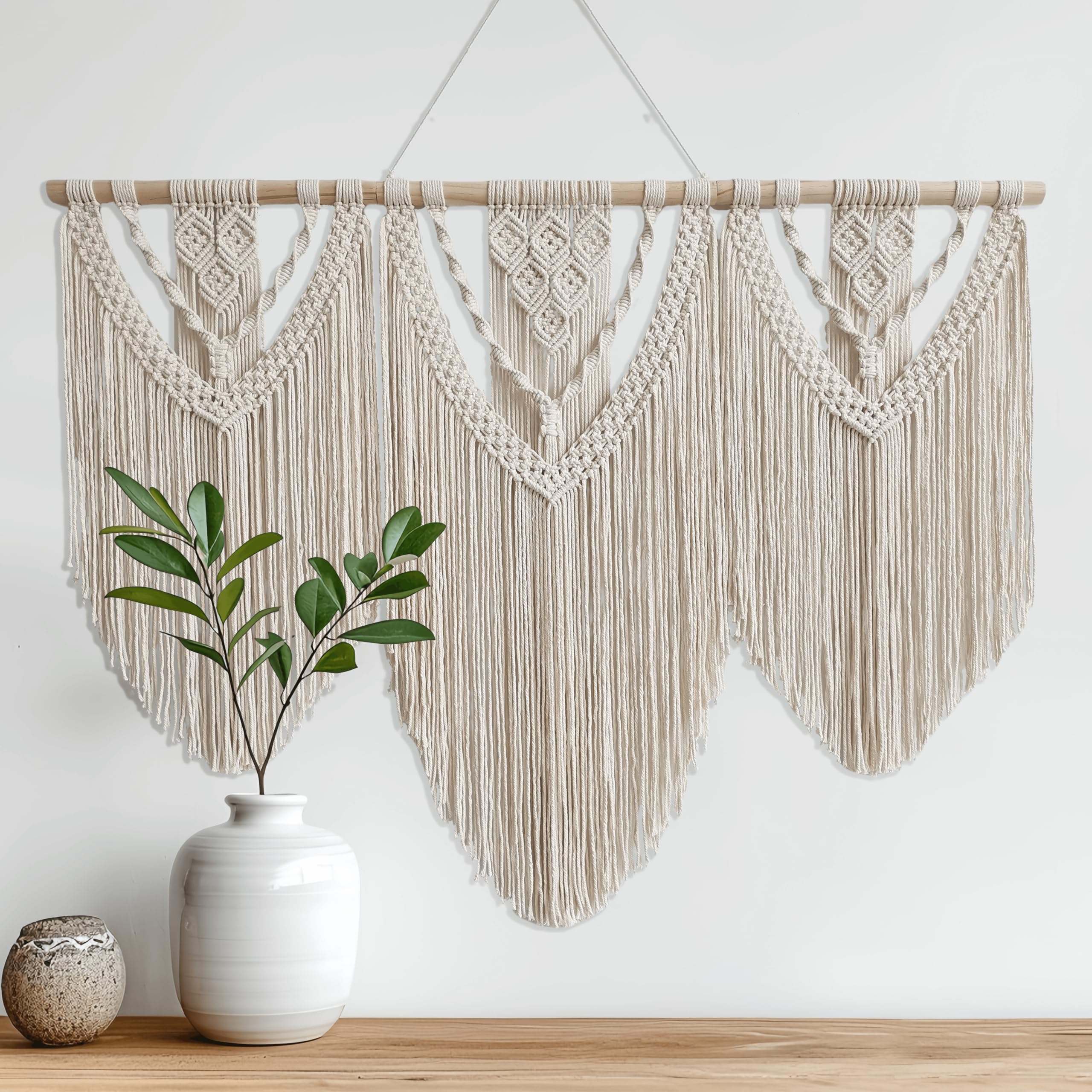 This wall hanging stands out because of its roomy size, measuring about 43 by 32 inches. It uses soft, natural cotton cords and comes with a sturdy wooden rod. The design is unique, giving your space a handmade look that fits well in bedrooms, living rooms, or even kitchens.