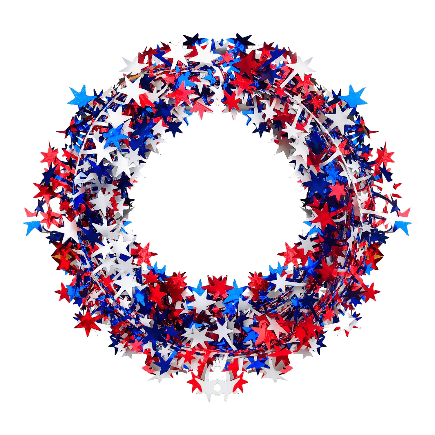 A long, shiny patriotic garland that’s easy to shape and great for showing off your holiday spirit.