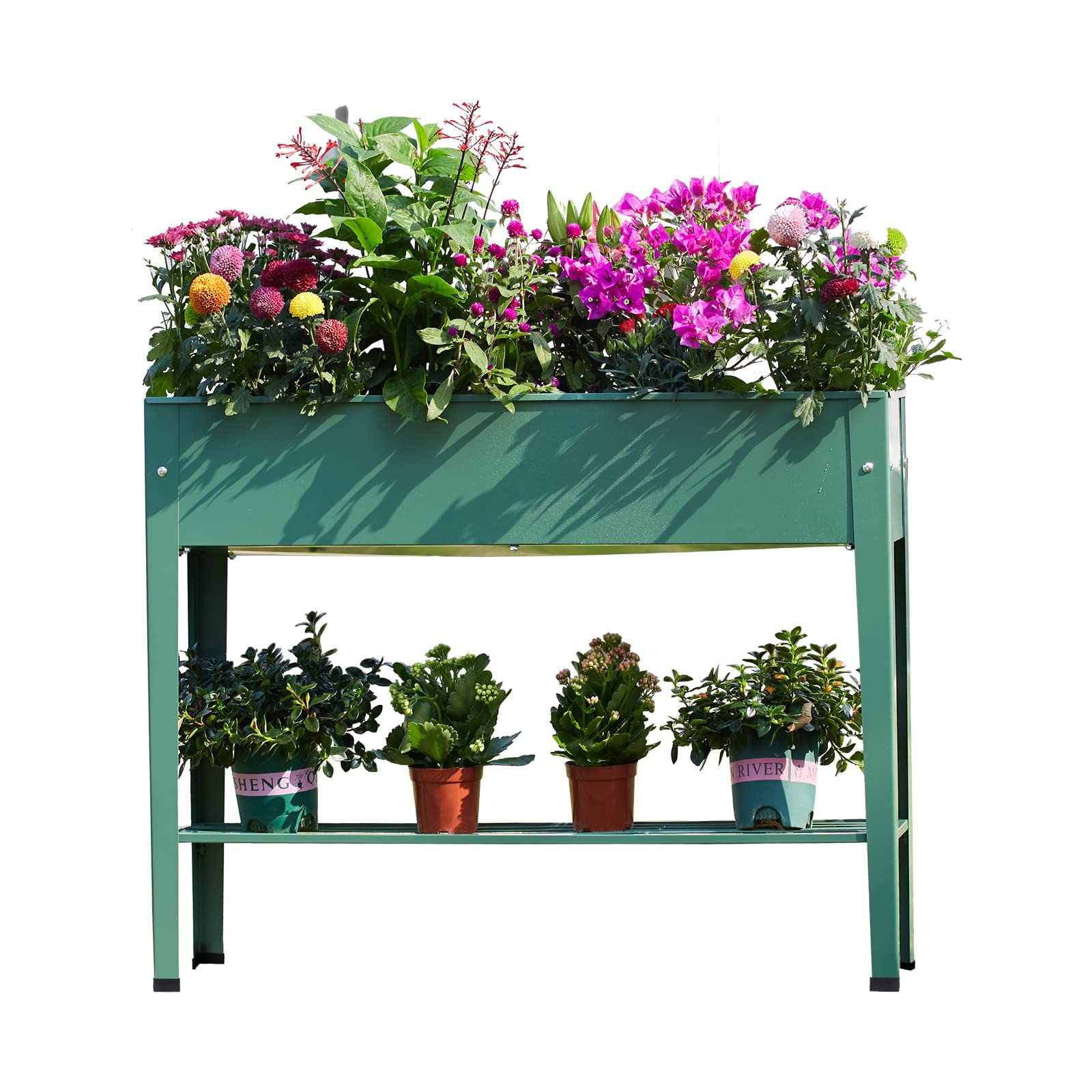 The wheels help you move the planter to find the best sunlight or protect plants from bad weather. It also includes a bottom shelf for storing small tools or extra pots, keeping your garden organized.