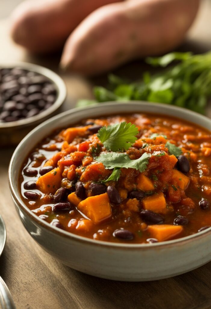 Start by sautéing chopped onion, garlic, and bell pepper in a pot. Add cubed sweet potatoes, black beans, tomatoes, and a mix of chili powder, cumin, and paprika. Let it simmer until the potatoes are tender.