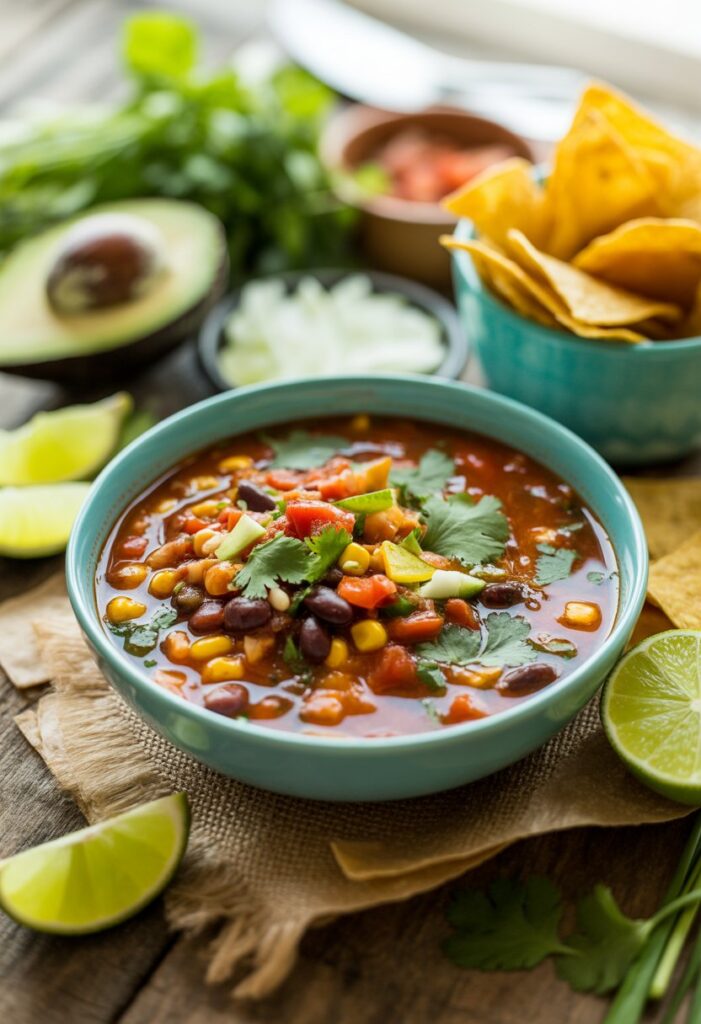 You can make this warm and hearty vegan taco soup with simple pantry ingredients. Use canned beans, corn, diced tomatoes, and taco seasoning to create a filling meal that costs less than five dollars. It’s easy to prepare and great for busy weeknights.