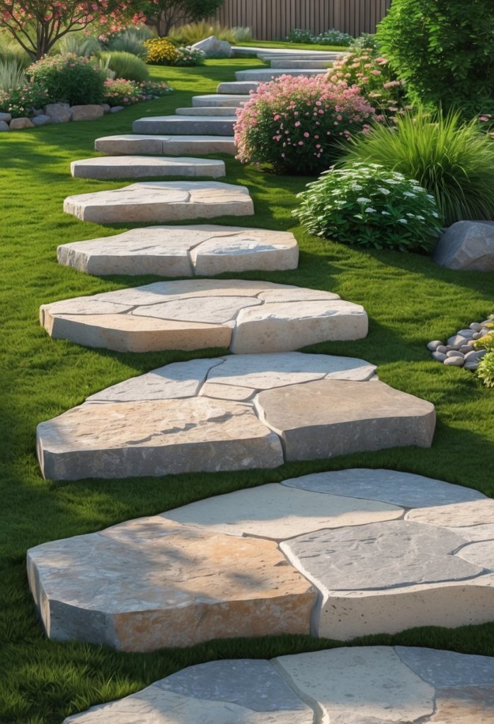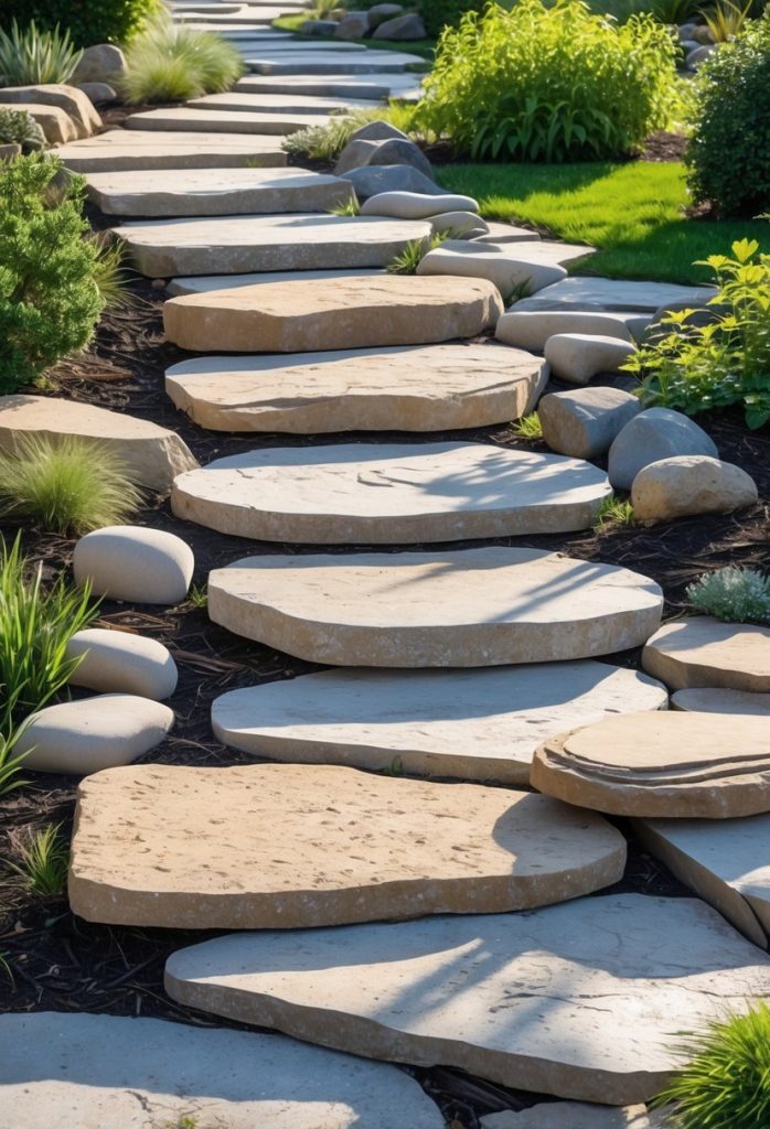 You can use flat natural stones to create simple, budget-friendly steps. These stones blend well with your garden and give a natural look. They are easy to install and durable, making them a great choice for any outdoor path.