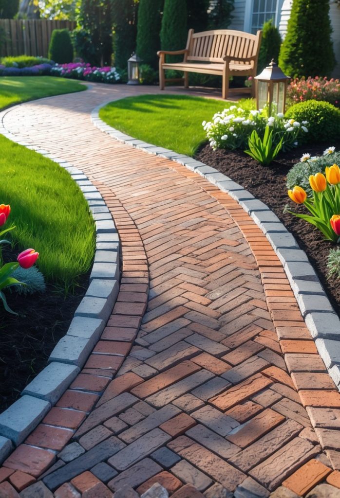You can create a classic look with brick paver walkways. They come in different colors like red, tan, and gray. Use brick pavers, not regular bricks, because they are stronger and better for walkways. You can mix bricks with stone or concrete for a unique design.