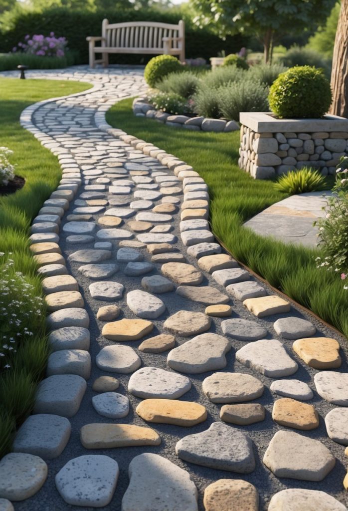 Cobblestone walks work well with many garden styles. They also let water drain easily, which helps keep your walkway safe and dry. You can create one yourself using basic tools and stones.