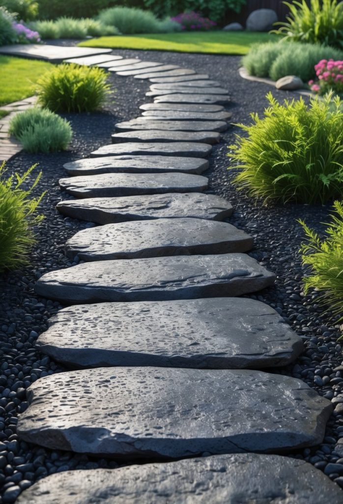 Laying gravel under the stones helps with drainage and keeps the path stable. It’s a simple way to add style to your yard without spending much.
