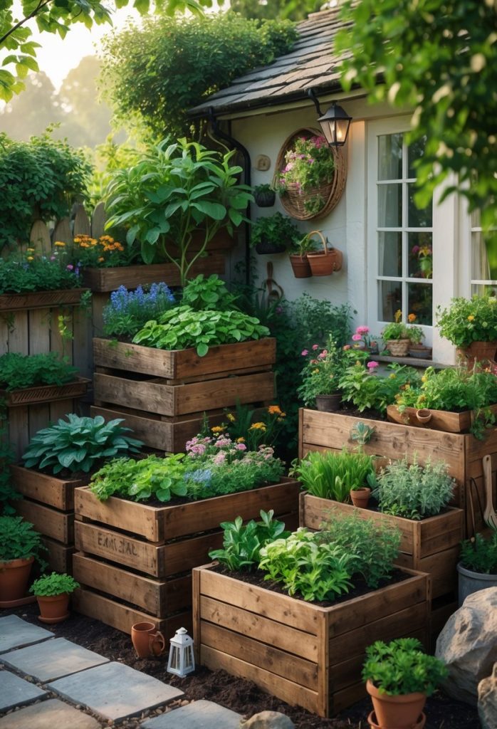 You can turn old wooden crates or vintage boxes into charming raised garden beds. They add a rustic touch and work well in small spaces.