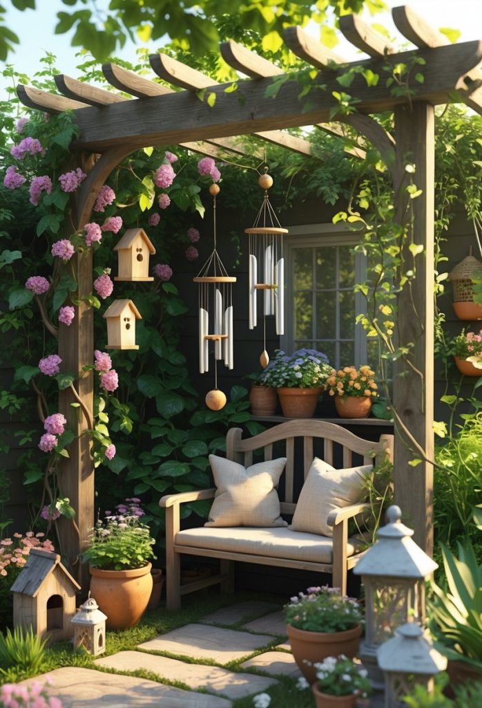 You can add wind chimes to bring soft, calming sounds to your garden. Choose lightweight materials like bamboo or wooden beads for a natural feel.