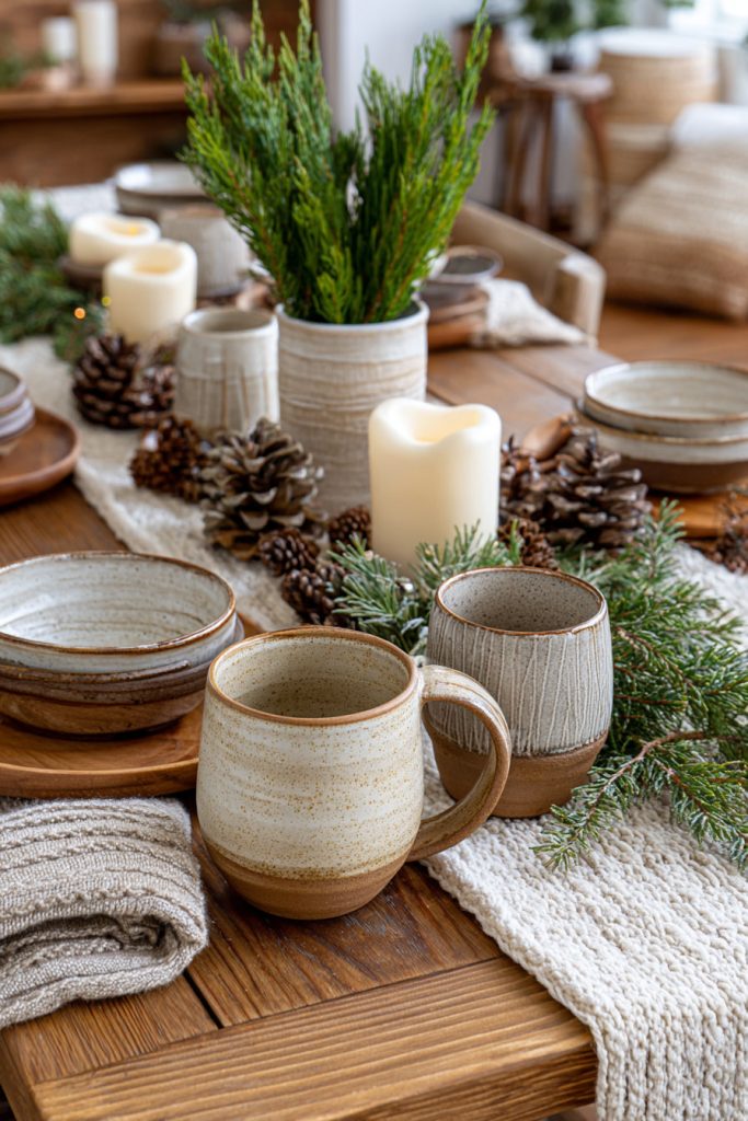 15. Decorate with handcrafted ceramic mugs for hot drinks