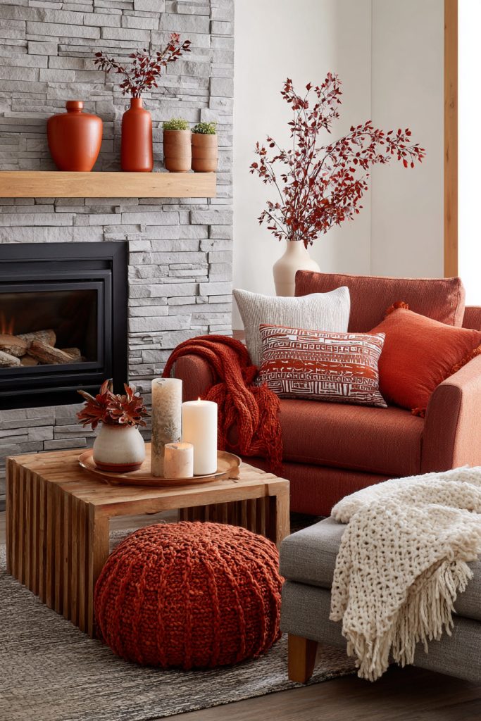 You can make your space feel cozier by adding warm colors. Burnt orange and deep reds work great for this.