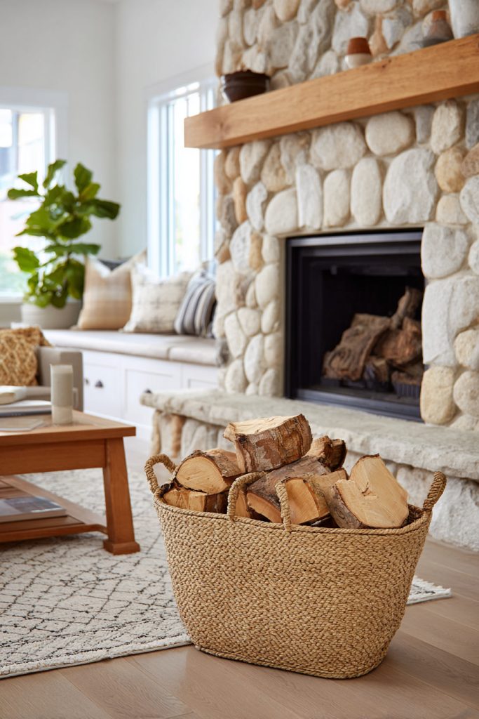 Even if you don’t use the wood for burning, it acts as a nice decoration. Choose a woven or wooden basket that fits your room style. This simple addition makes your home feel inviting during winter.