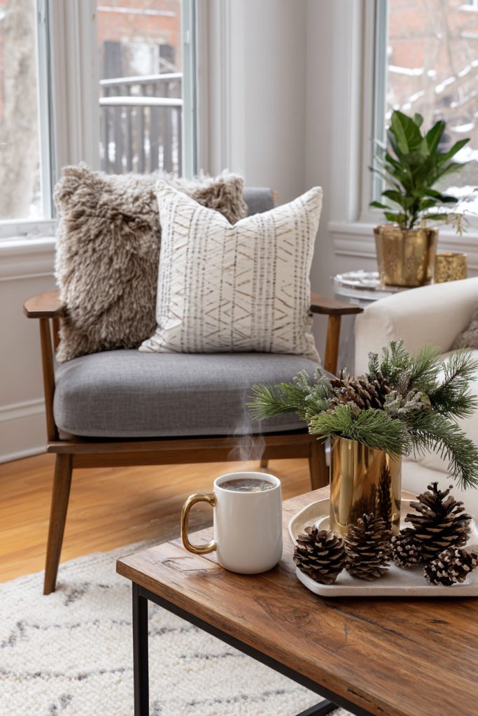 Using plaid on your furniture adds charm without feeling old-fashioned. It’s an easy way to update your winter decor.