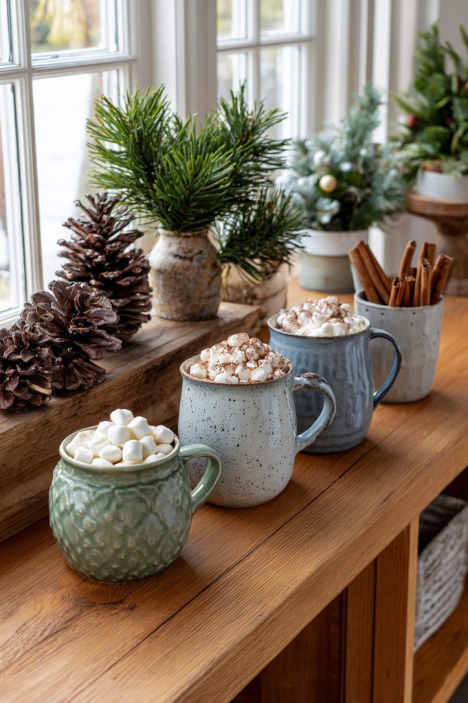 You can make your winter gatherings cozy by setting up a hot cocoa station. Use festive mugs to add a cheerful touch.