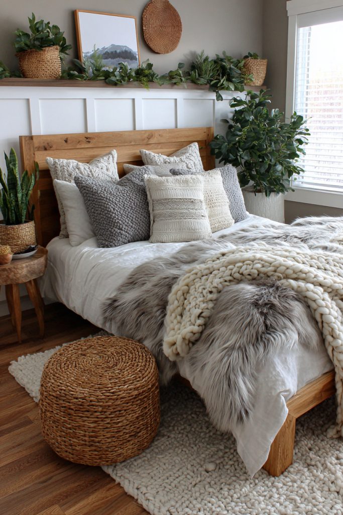You can make your bed feel warm and inviting by adding soft fur throws. They not only keep you cozy but also add texture and style to your room.