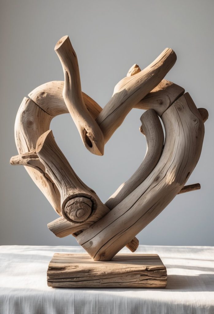 Use small driftwood pieces to form a heart shape, then add candles or flowers around it. It’s a lovely way to add a personal touch to your space.