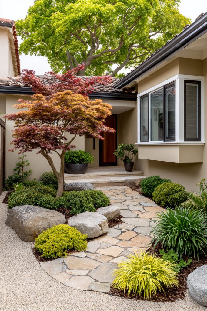You can use a Japanese maple tree to create a beautiful focal point in your front garden. Its colorful leaves and delicate shape naturally draw attention.