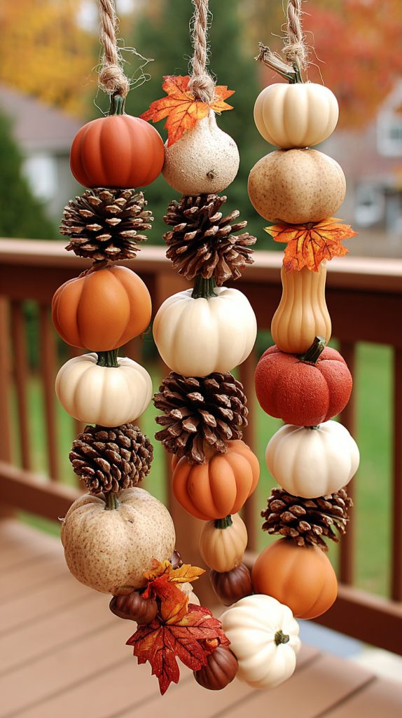 You can create a warm, welcoming look by hanging a rustic gourd garland on your porch. Use small gourds in different shapes and colors for a natural, cozy feel.