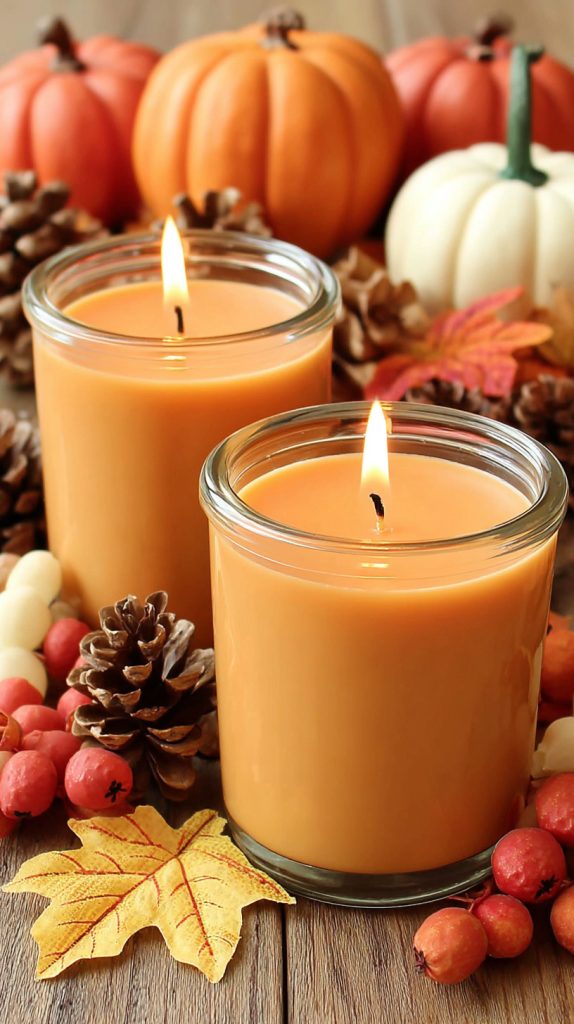 You can bring the cozy feeling of fall into your home with pumpkin spice-scented candles. They fill your space with warm scents like cinnamon, clove, and nutmeg. Lighting one is an easy way to enjoy the soft, spicy aroma that reminds you of autumn days. It adds a nice touch of comfort and seasonal charm to any room.