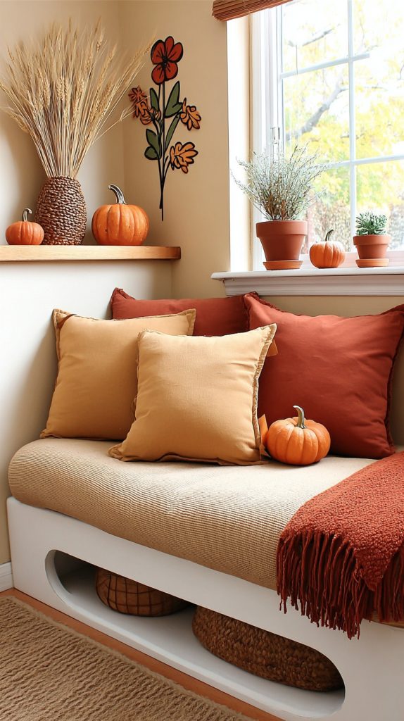 You can add warmth to your space with velvet pillows in orange and burgundy. These colors bring a cozy fall feel that works well on sofas or chairs.