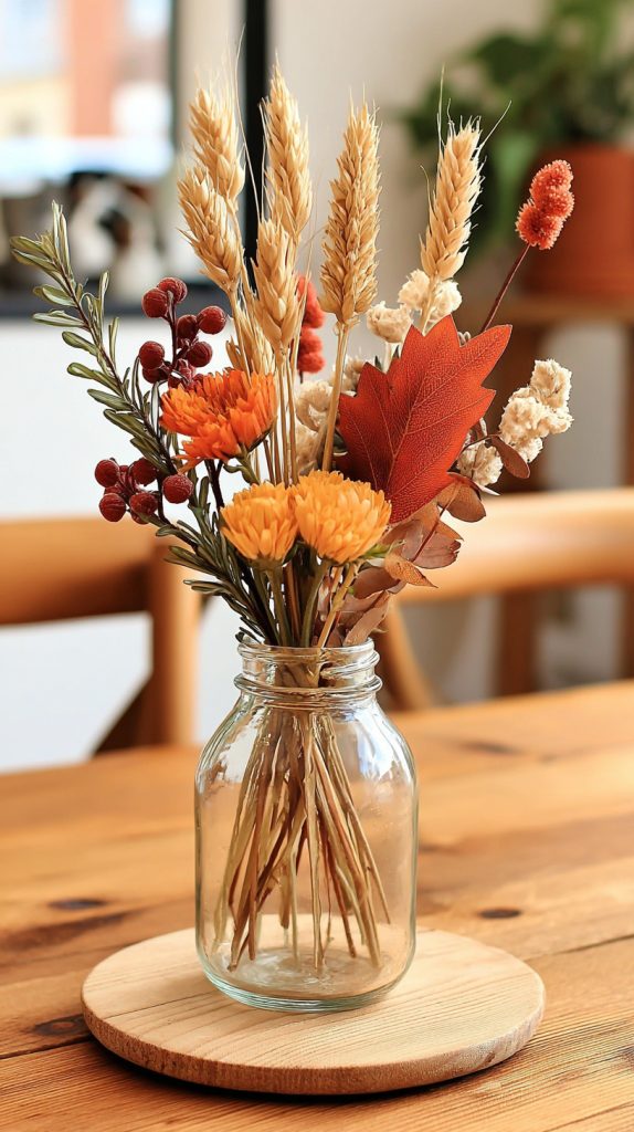 You can use dried wheat stalks to fill a vase for a simple and natural fall look. They add a warm, rustic touch to your space without needing much care.