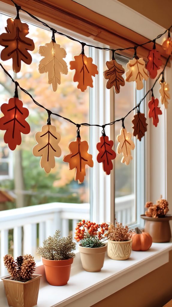 You can add a warm and cozy touch to your home with leaf-shaped string lights. These lights come in different colors and styles that fit fall decorations perfectly.