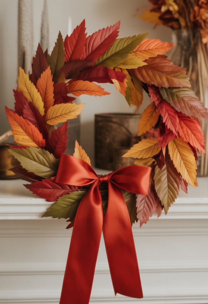 Try attaching faux or real leaves in reds, oranges, and yellows. This simple touch adds a cozy, seasonal feel without much effort. You’ll love how it brightens your room while staying festive.