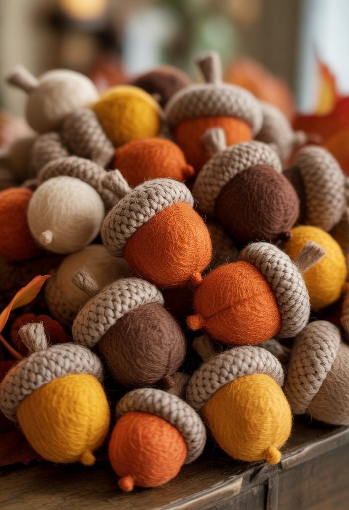 Place them in small bowls or scatter them along a garland for a simple, pretty look. Felt acorns are easy to arrange and match well with other fall decor.