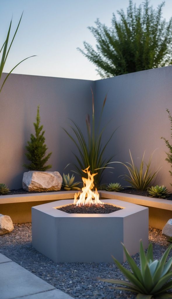 You can fit a simple fire pit in a small corner to save space. Choose clean lines and basic shapes for a neat look.