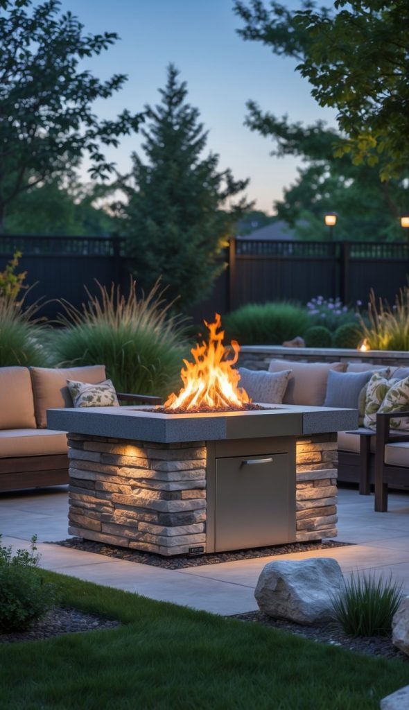 You can mix stone and metal for a firepit that feels both natural and modern. The stone base adds a solid, earthy look, while metal accents give it a sleek touch. Metal grates or screens also help keep your fire safe and stylish.