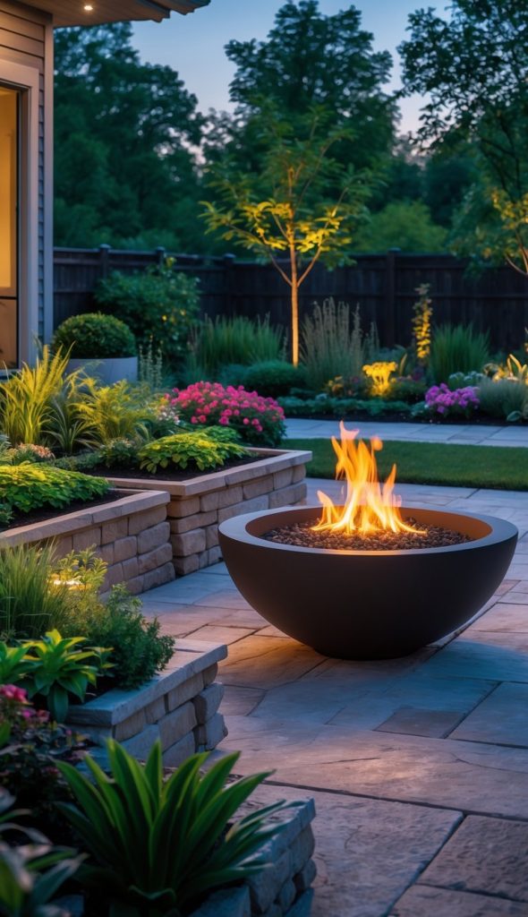 You can place a fire bowl near raised garden beds to create a cozy and inviting space. The fire adds warmth while the plants bring color and life. This setup works well for small yards and offers a relaxing spot to enjoy the outdoors.