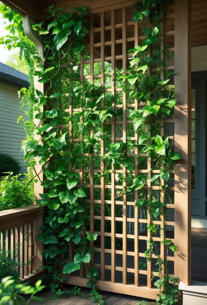 You can create a nice privacy wall by using a lattice trellis. The open design lets climbing plants grow through, adding natural beauty.