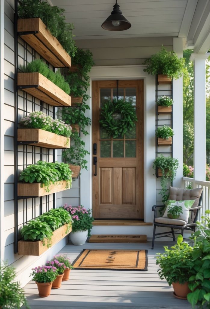 They also give you a spot to display small pots or decorations. This idea helps keep your porch neat while bringing in some green. It’s simple and stylish for tight spaces.