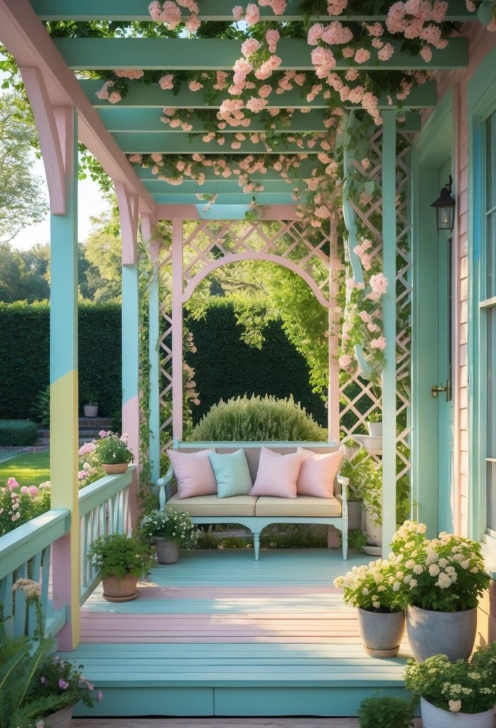 These colors work well with climbing plants like sweet peas or morning glories. The pastel tones help create a calm and inviting space for your guests.