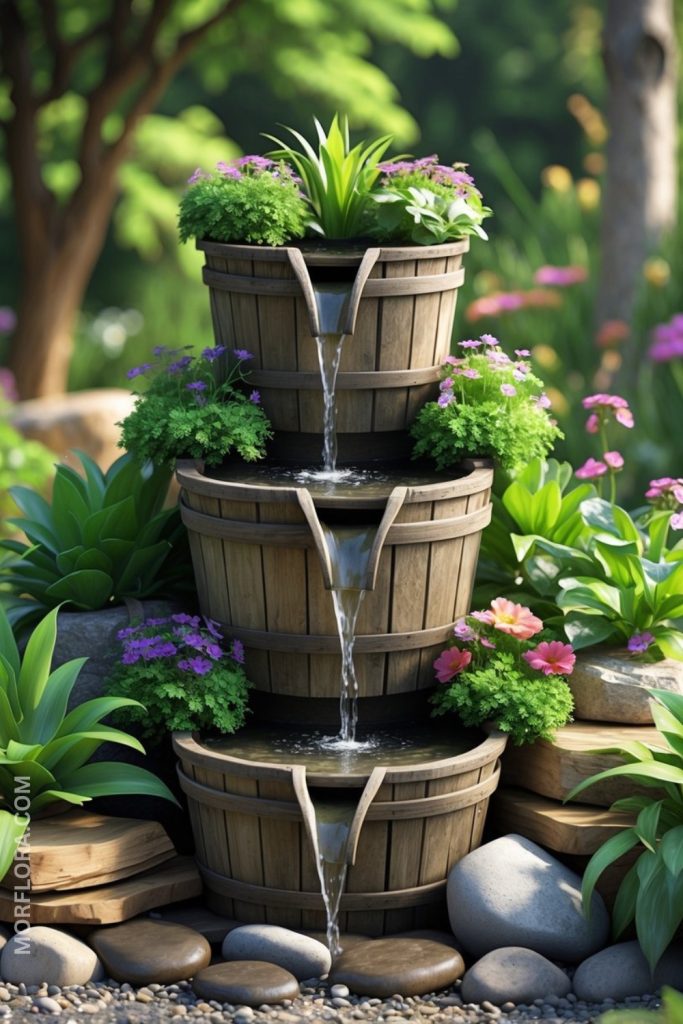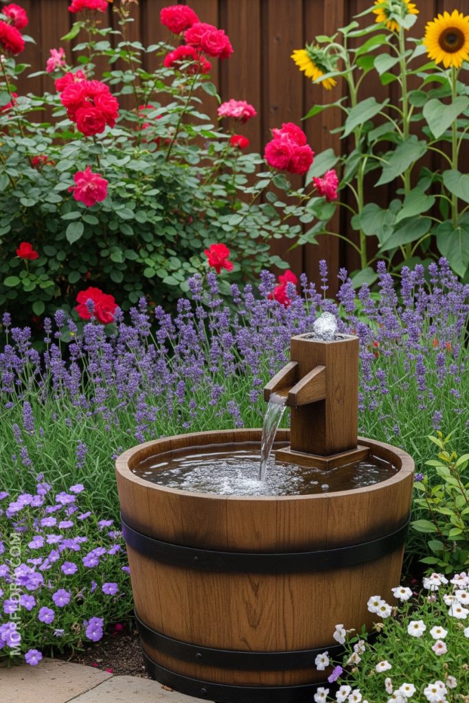 You can turn an old wooden barrel into a charming water fountain. It adds a warm, rustic look to your garden.