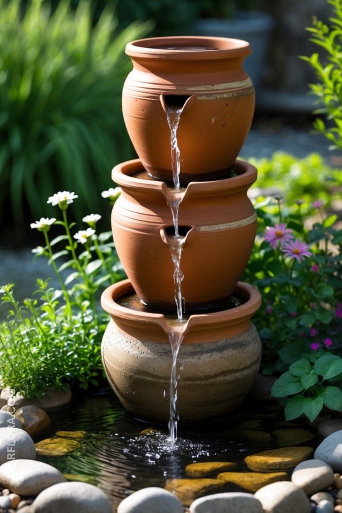 You can create a simple water fountain using terracotta pots. Stack the pots and add a small pump to circulate the water. This idea works well indoors or outdoors and adds a natural look to your space.