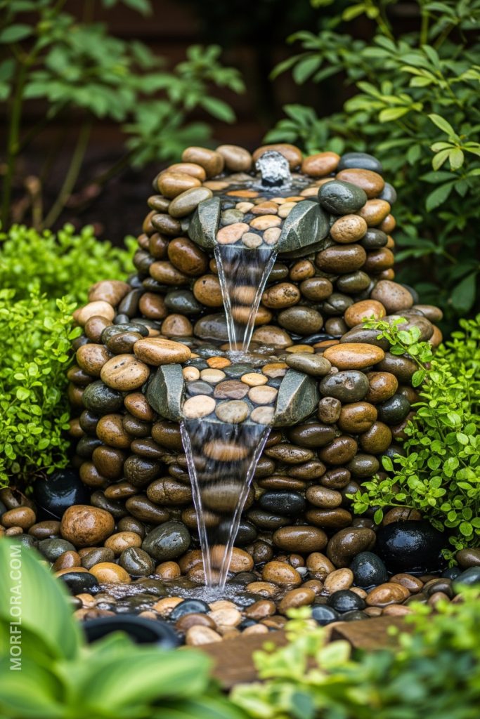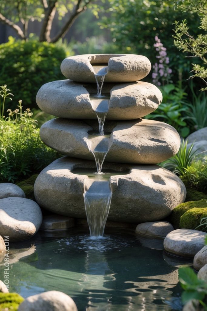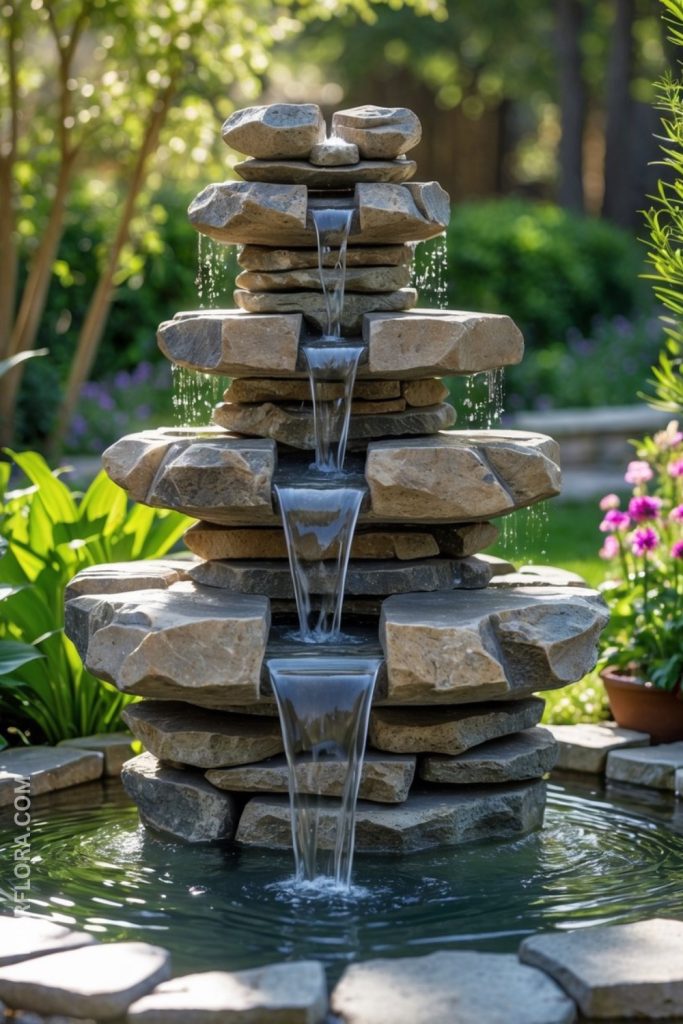 You can build a stacked stone fountain using flat stones of different sizes. Place them around a small pump to let water flow smoothly. This style fits well in gardens and adds a natural, relaxing look to your outdoor space.