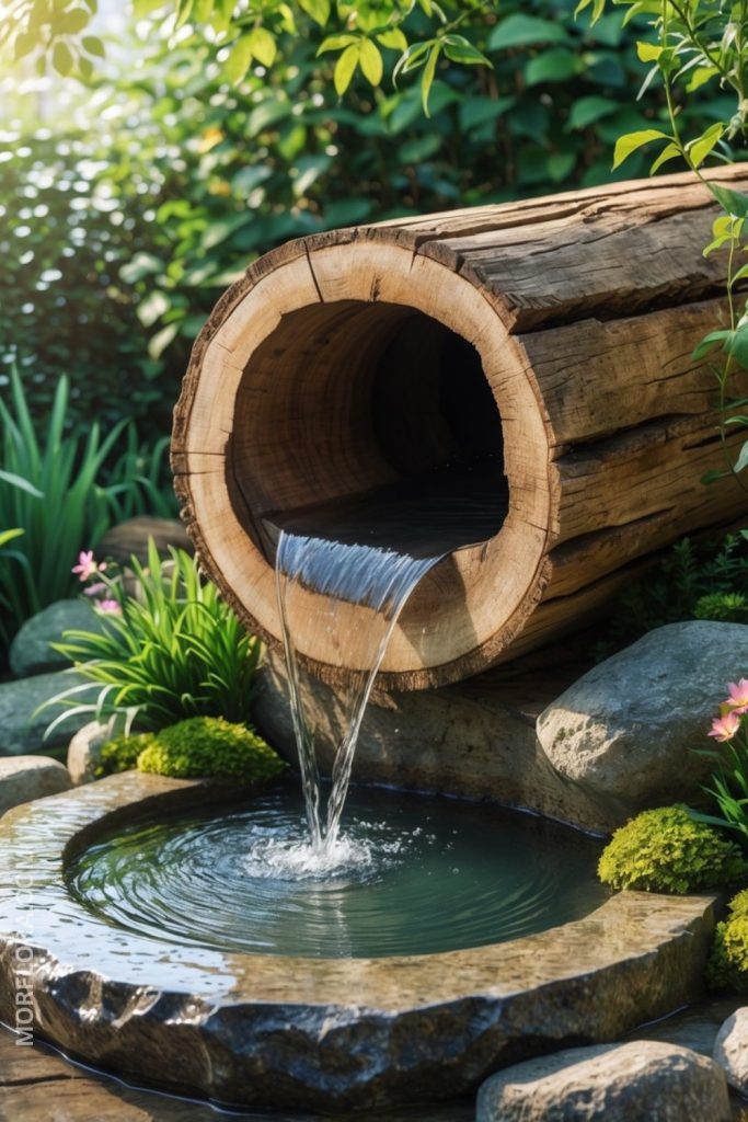 You can make a simple fountain using a hollow log. Hollow out a thick branch or fallen log and place a small water pump inside. Water will flow naturally, creating a soft, peaceful sound for your garden space.