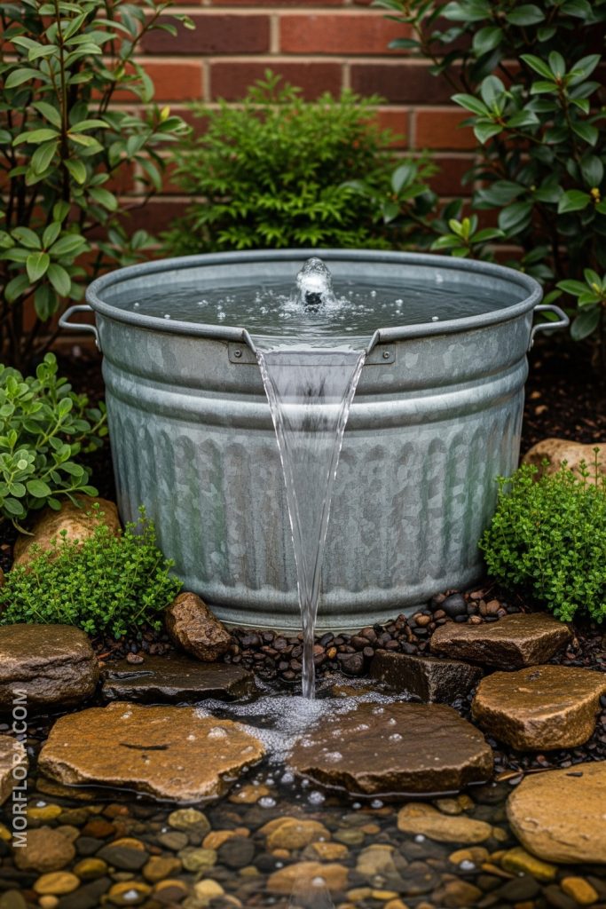 You can use a galvanized tub as a simple base for a water fountain. Just add a small pump and some stones or plants to make it look natural. It’s easy to move around and fits well in most gardens.