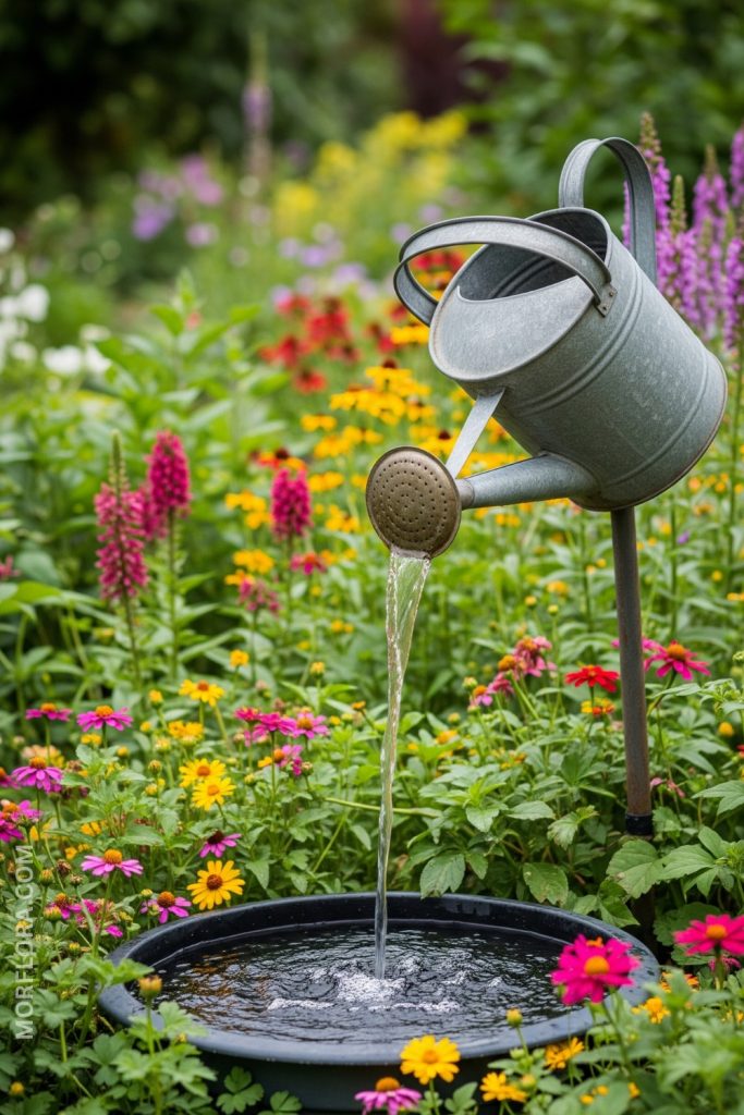 You can turn an old watering can into a charming fountain. Just add a small pump inside to circulate the water.