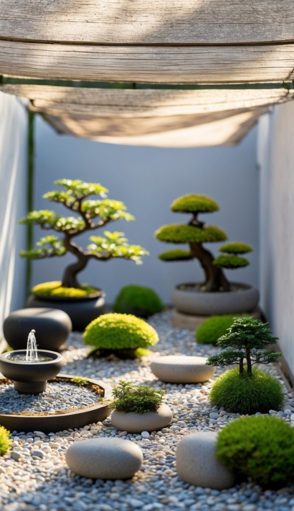 You can use dappled shade cloth to create soft light patterns like those found in nature. This helps protect delicate plants from harsh sunlight. It also adds a calm, natural feel to your mini Japanese garden. Keep the cloth light enough to let some sun through.