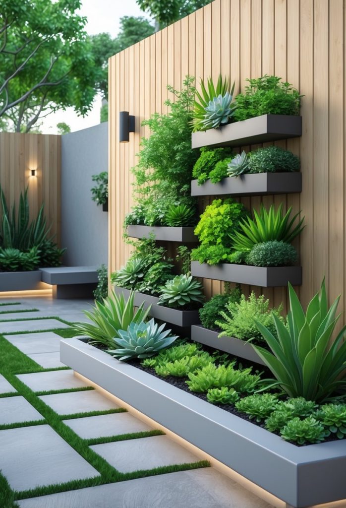 Choose plants that need little care, like succulents or herbs. A vertical garden adds life without cluttering your yard, making it perfect for a minimalist style.