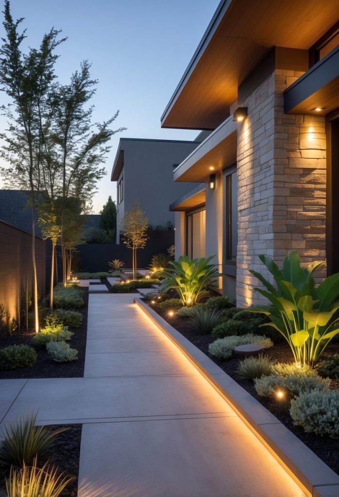 You can make your front yard feel cozy by adding outdoor lighting with warm tones. Soft yellow or amber lights highlight your plants and pathways gently.