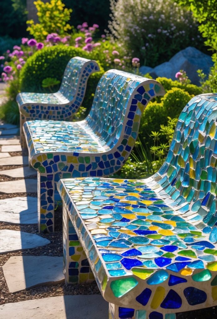 Using sea glass in mosaics makes your bench feel peaceful and connected to nature. It’s a simple way to make your garden seating unique and inviting.